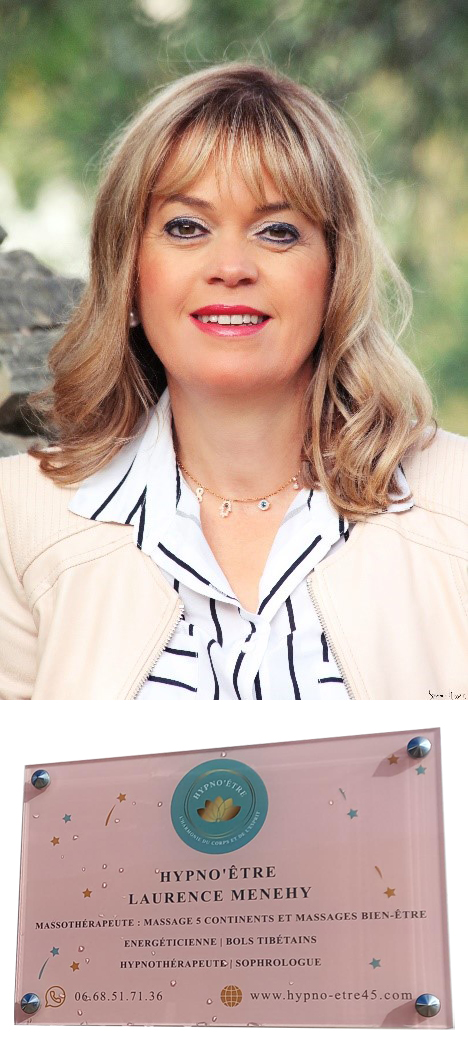 Laurence Menehy... Suite à des problèmes de santé que la médecine traditionnelle ne pouvait pas solutionner à elle seule, j'ai décidé en complément de me tourner vers les médecines douces. Le bien-être et les résultats apportés par ces thérapies m'ont donné envie d'aller plus loin dans la démarche et prendre un nouveau virage professionnel. Je me suis donc formée pour devenir thérapeute bien-être.